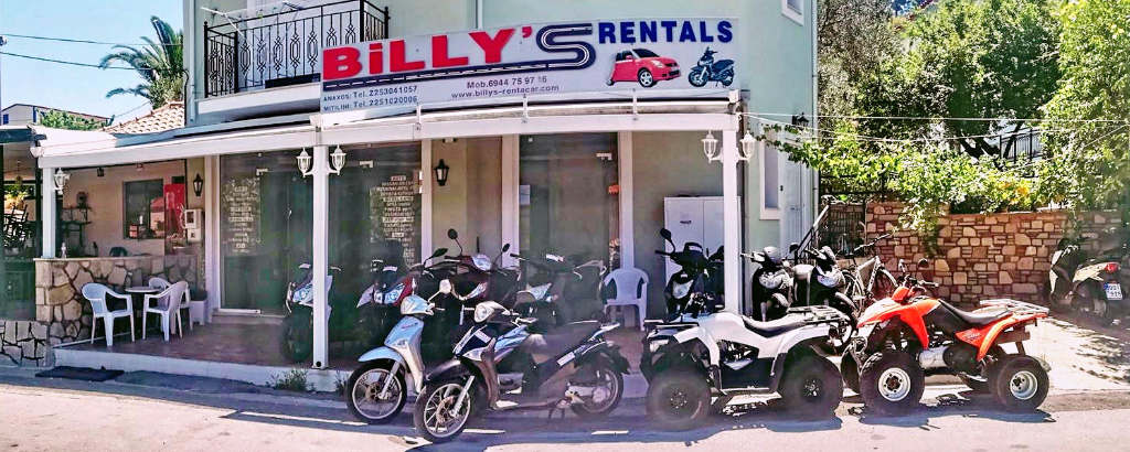 Billy’s Rent a car, 1985 yılında Anaxos Plajı’nda (Kuzey Midilli’deki Petra ve Molivos tatil yerlerinin yakınında) bir motosiklet ve motorlu bisiklet kiralama şirketi olarak kurulmuştur.